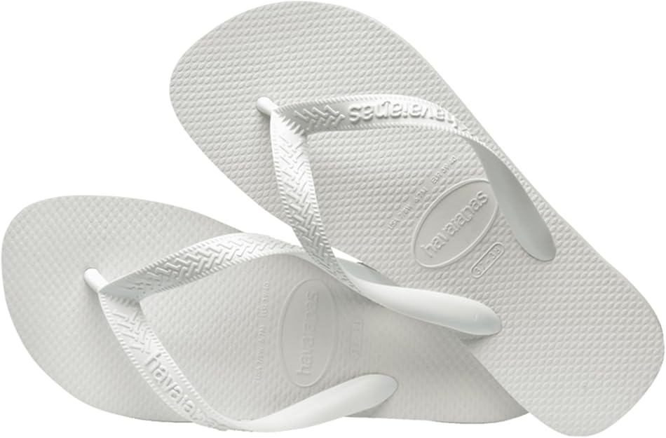 The original flip flop, Havaianas can be identified by the “Greeks” in the strap and signature rice-pattern sole, which not only shows a true Havaianas sandal, but also provides added slip-resistance.